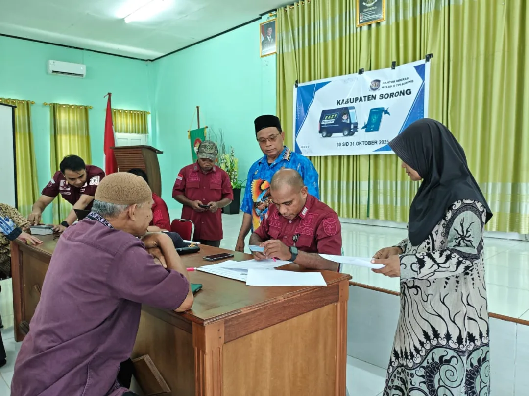 Aimas, 30 Oktober 2025 — Kantor Imigrasi Kelas II TPI Sorong kembali menghadirkan layanan jemput bola Eazy Passport untuk memudahkan masyarakat dalam pengurusan dokumen keimigrasian. Kali ini, kegiatan dilaksanakan di Kantor Kementerian Agama Kabupaten Sorong, Aimas, pada Kamis (30/10/2025).